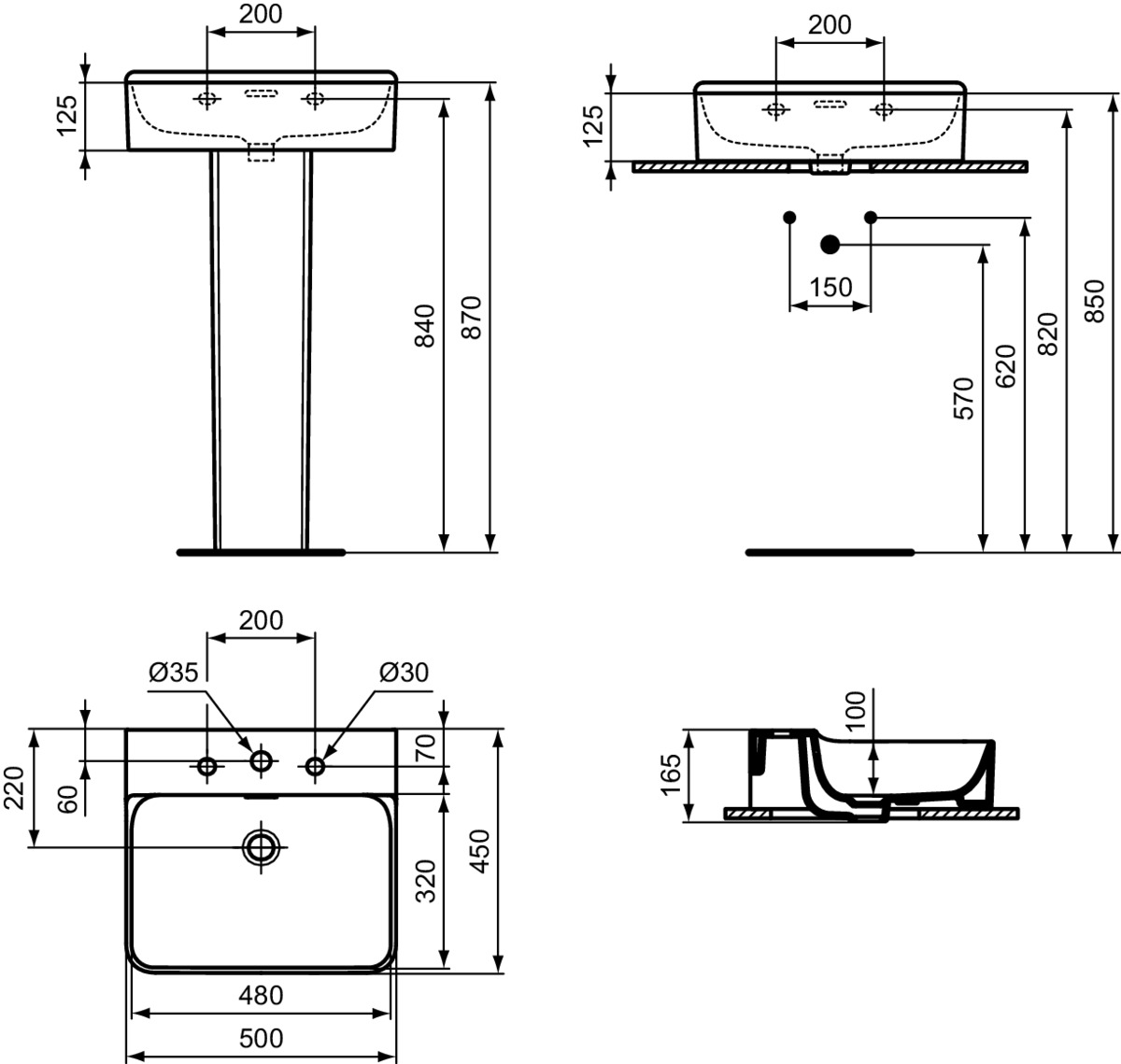 CONCA раковина 50 см с тремя отверстиями под смеситель, с отверстием перелива