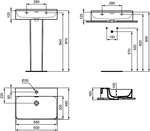 CONCA раковина 60 см с отверстием под смеситель, с отверстием перелива