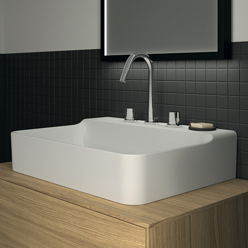 Подвесная раковина Conca 60х45х14,5 см, с 3 отверстиями под смеситель, без отверстия перелива, нижняя поверхность отшлифована, санфарфор, с отв. под смеситель