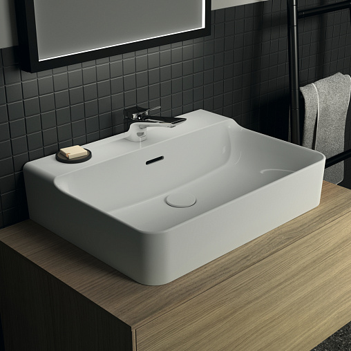 CONCA раковина 60 см с отверстием под смеситель, с отверстием перелива, нижняя поверхность отшлифована