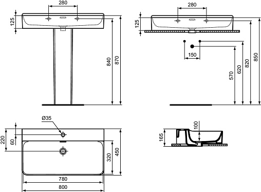 CONCA раковина 80 см с отверстием под смеситель, с отверстием перелива