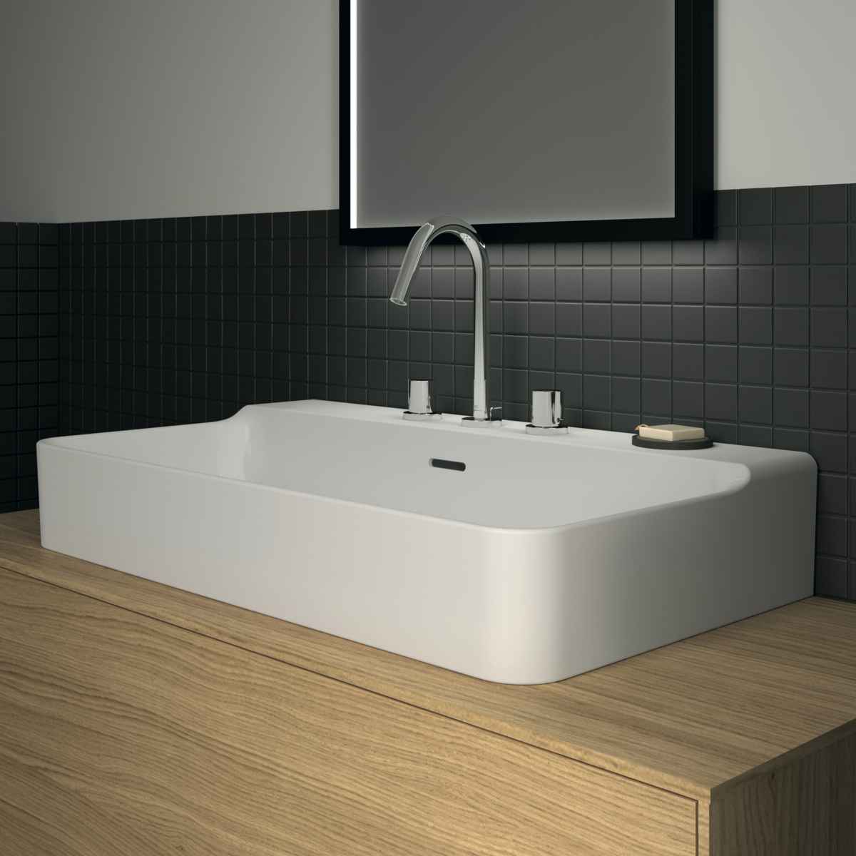 Подвесная раковина Conca 80х45х16,5 см, с 3 отверстиями под смеситель, нижняя поверхность отшлифована, санфарфор, с отв. под смеситель