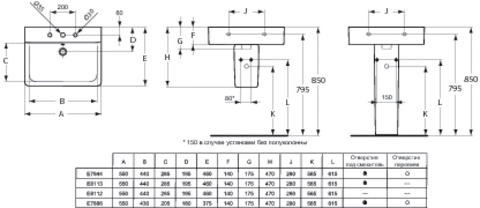 Connect CUBE Умывальник 55 см, 1 отверстие под смеситель, без перелива