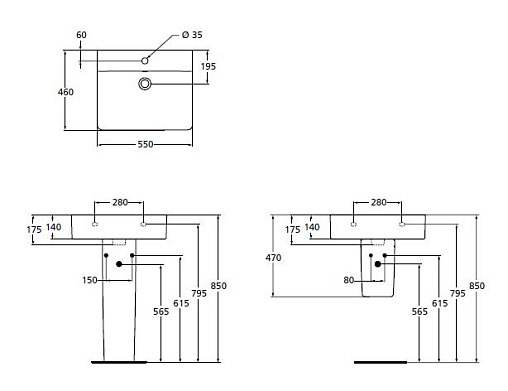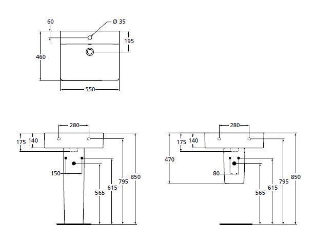 Подвесная раковина Connect 55х46х17,5 см, санфарфор