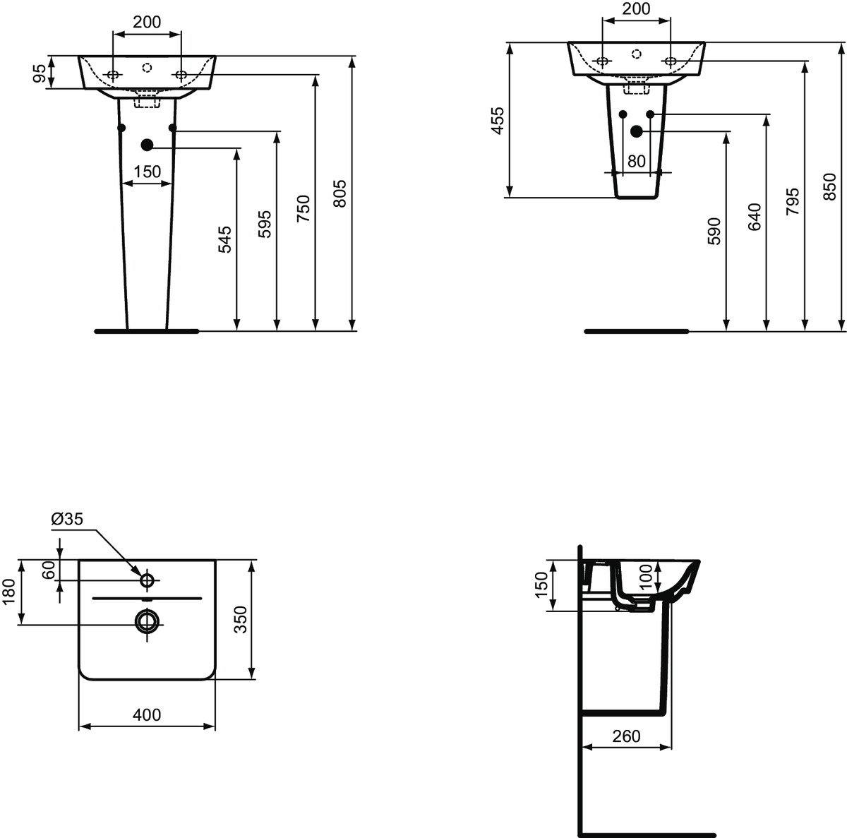 CONNECT AIR Cube раковина для рук 40 см, для монтажа соло с сифоном, малой колонной / полуколонной; с отверстием под смеситель, с отверстием перелива. Без крепежа