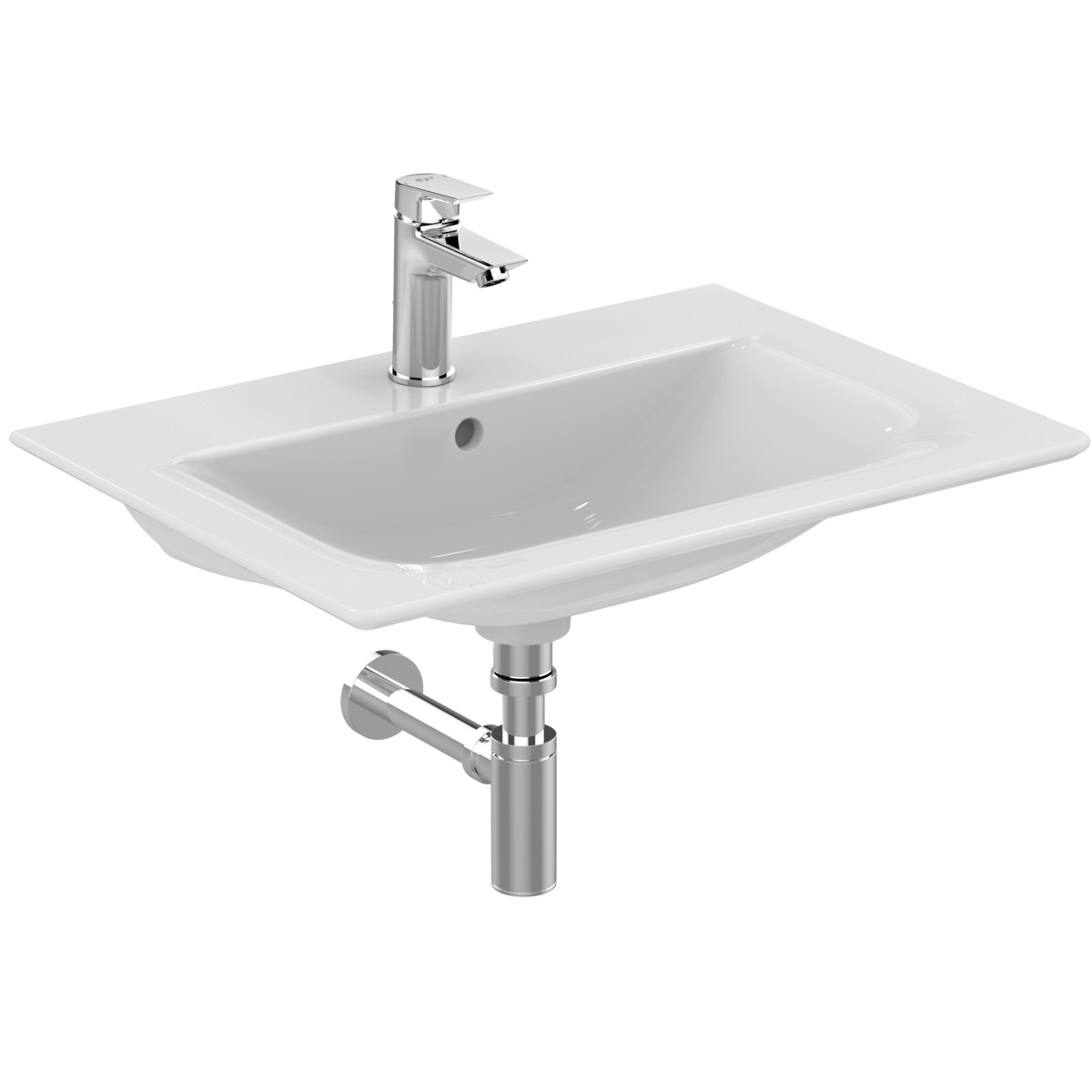 CONNECT AIR Vanity раковина 64 см, для монтажа соло с дизайн-сифоном или с тумбой; с отверстием под смеситель, с отверстием перелива. Без крепежа