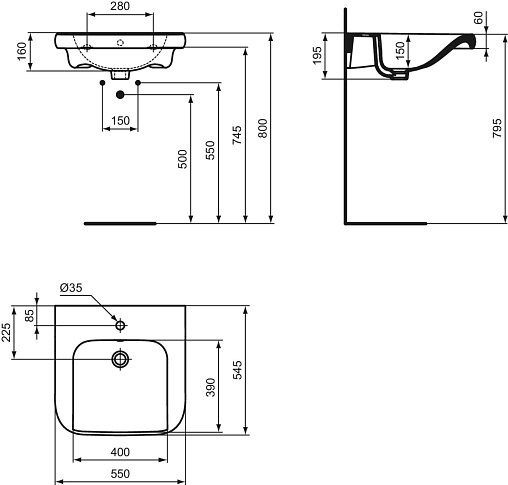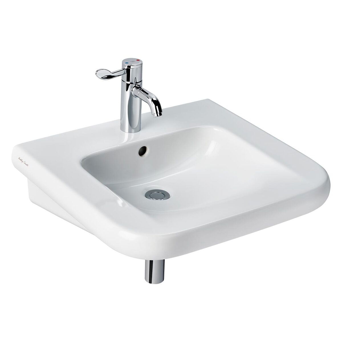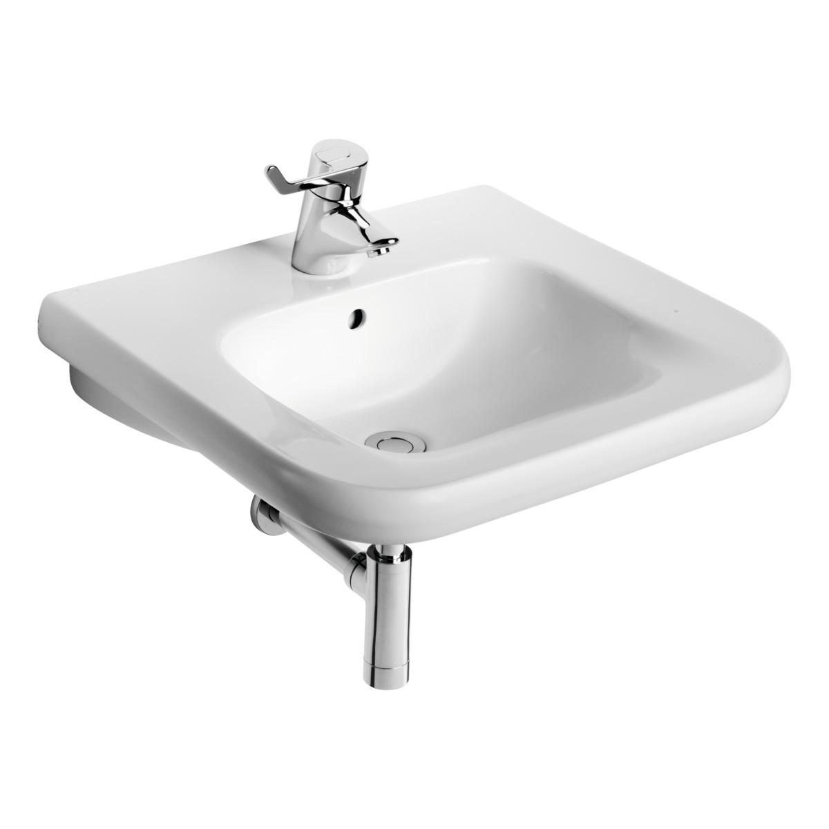 CONTOUR 21 Раковина 55 см для инвалидов - с внутренней выемкой по фронтальной стороне (для лучшего приближения), 1 отверстие под смеситель, с отверстием перелива. Без крепежа (рекомендуемый крепеж - E015767)
