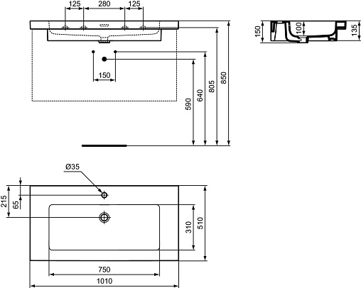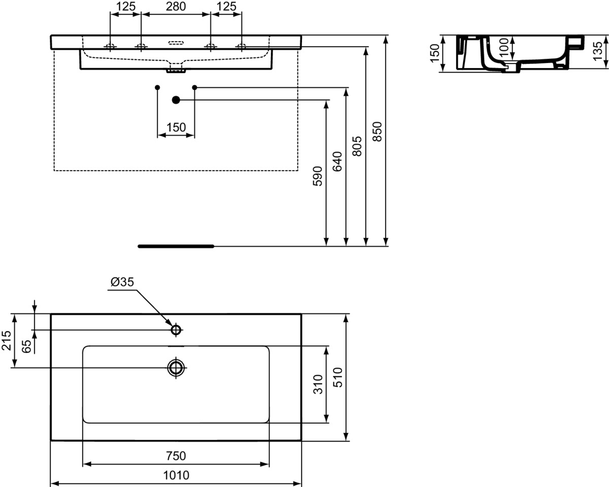 Extra 101х51х15см, подвесная раковина, санфарфор, белый матовый, с отв. под смеситель, арт. T4366V1, Ideal Standard