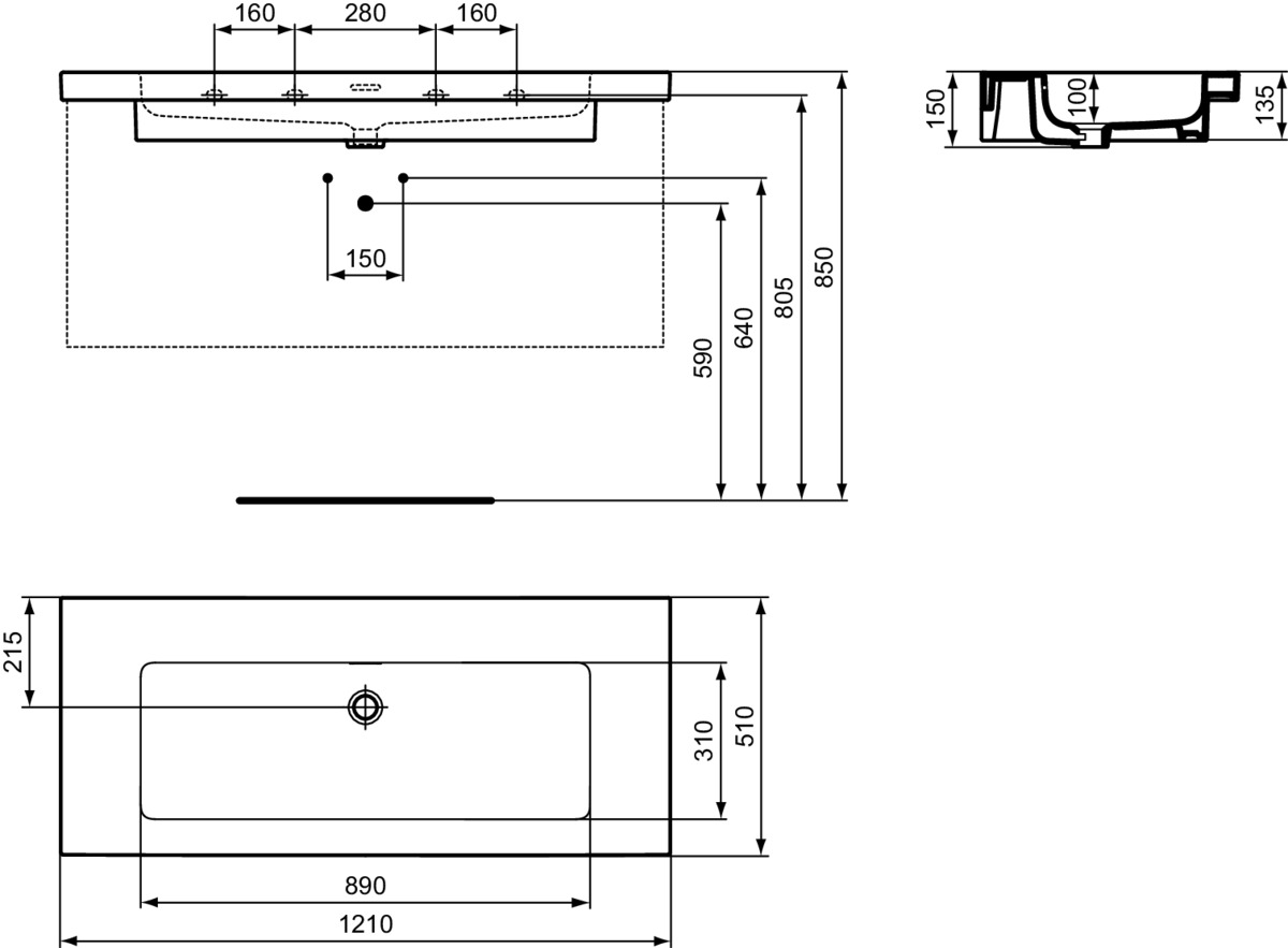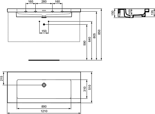 Extra 121х51х15см, подвесная раковина, санфарфор, арт. T437301, Ideal Standard
