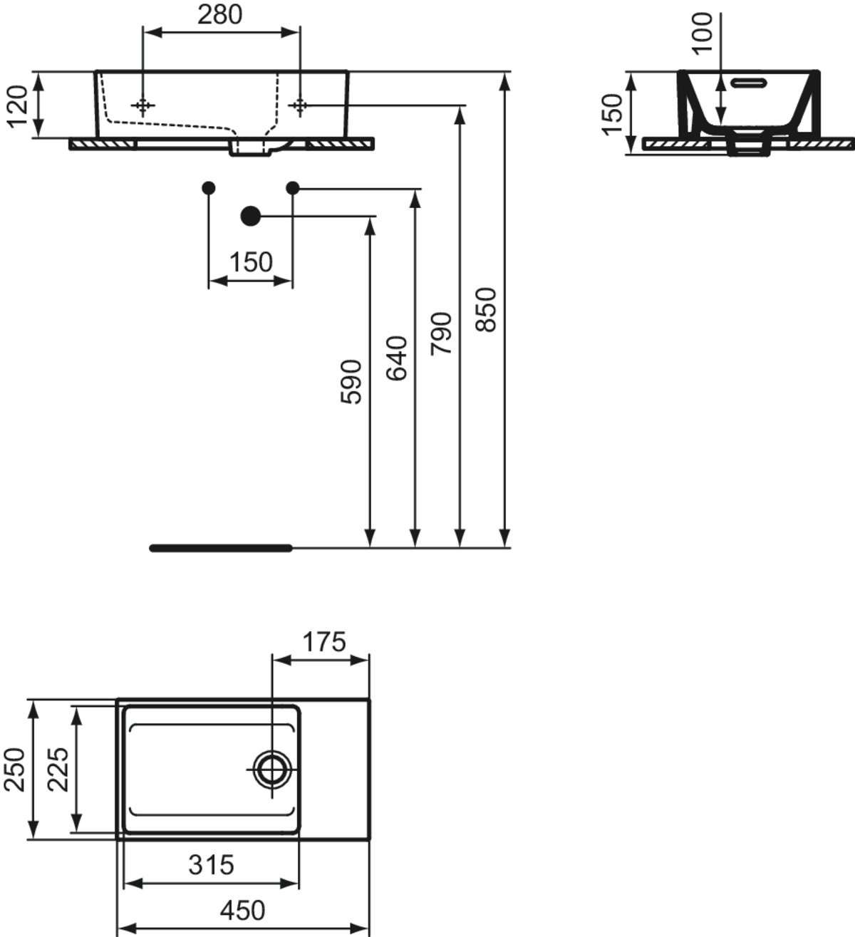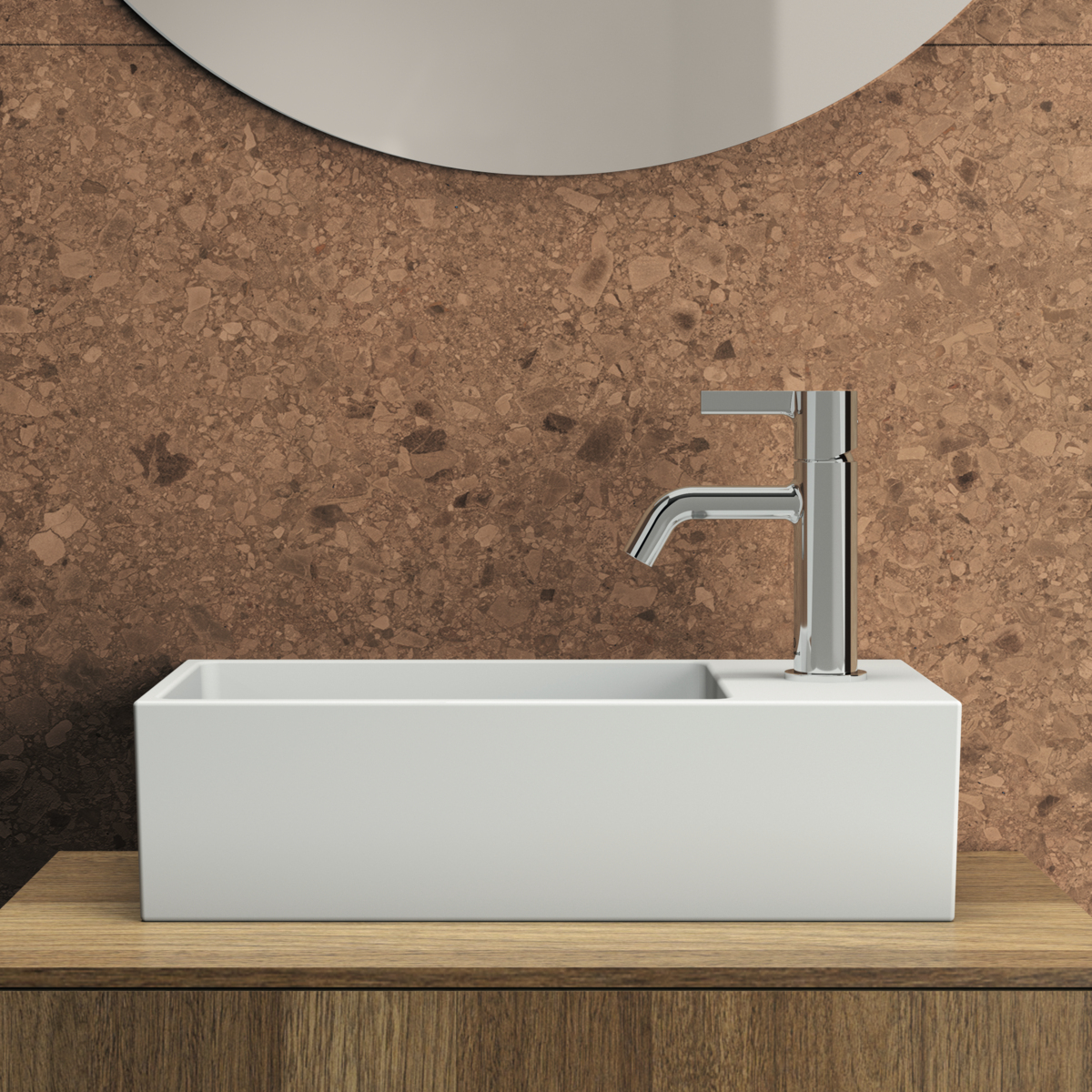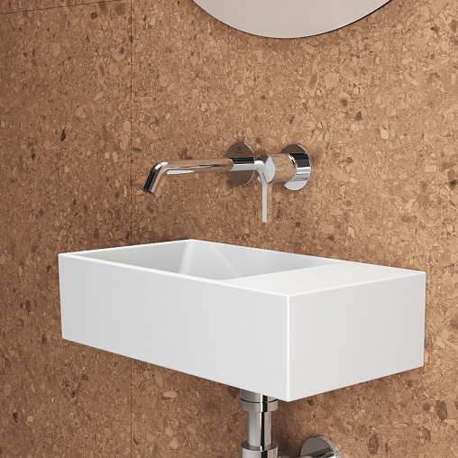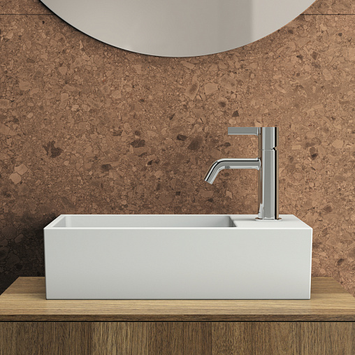 Подвесная раковина Extra 45х25х12 см, правая, нижняя поверхность отшлифована, санфарфор
