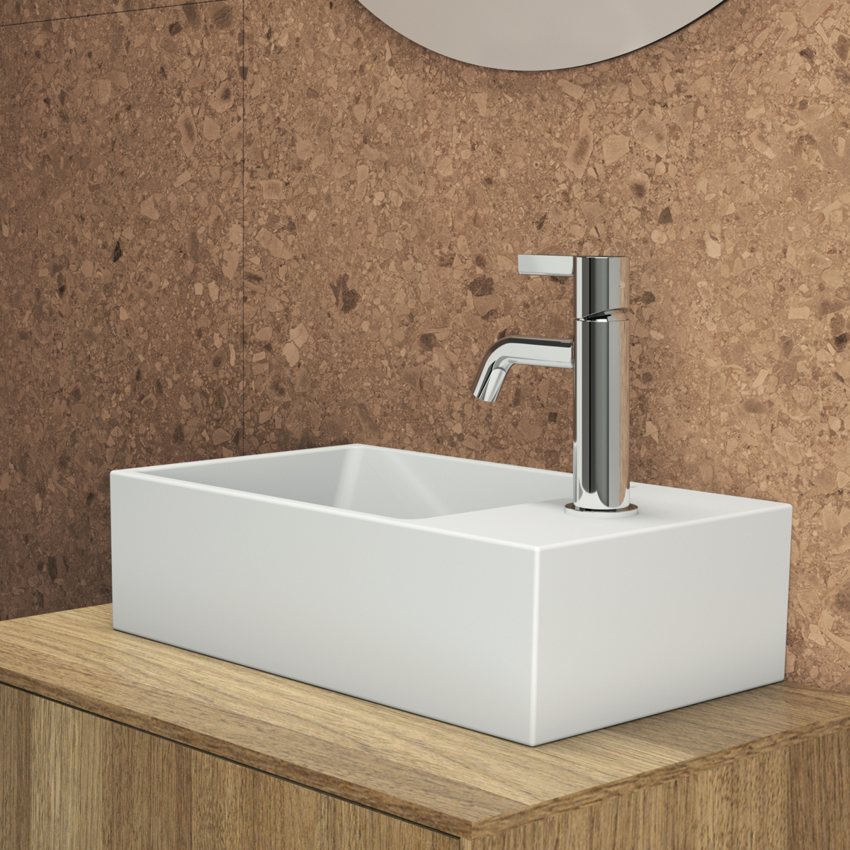 EXTRA Раковина для рук 45х25 см с отверстием под смеситель справа, с отверстием перелива, нижняя поверхность отшлифована, с крепежом TT0299729