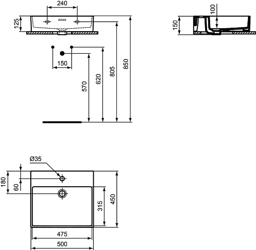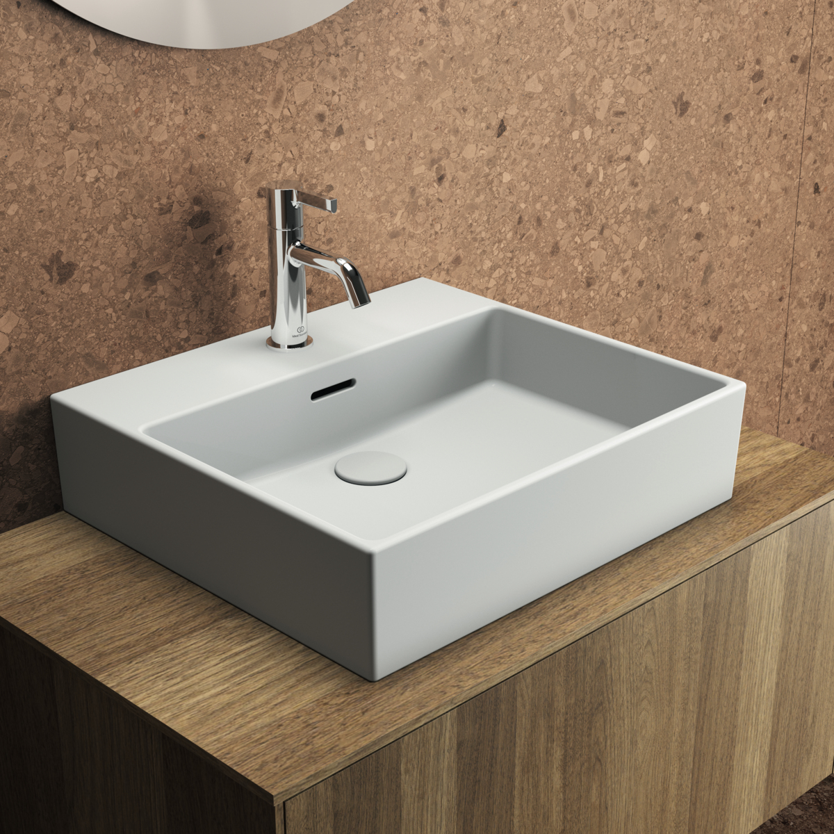 Подвесная раковина Extra 50х45х15 см, нижняя поверхность отшлифована, санфарфор, с отв. под смеситель