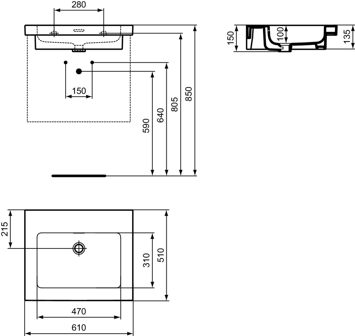 Подвесная раковина Extra 61х51х15 см, санфарфор