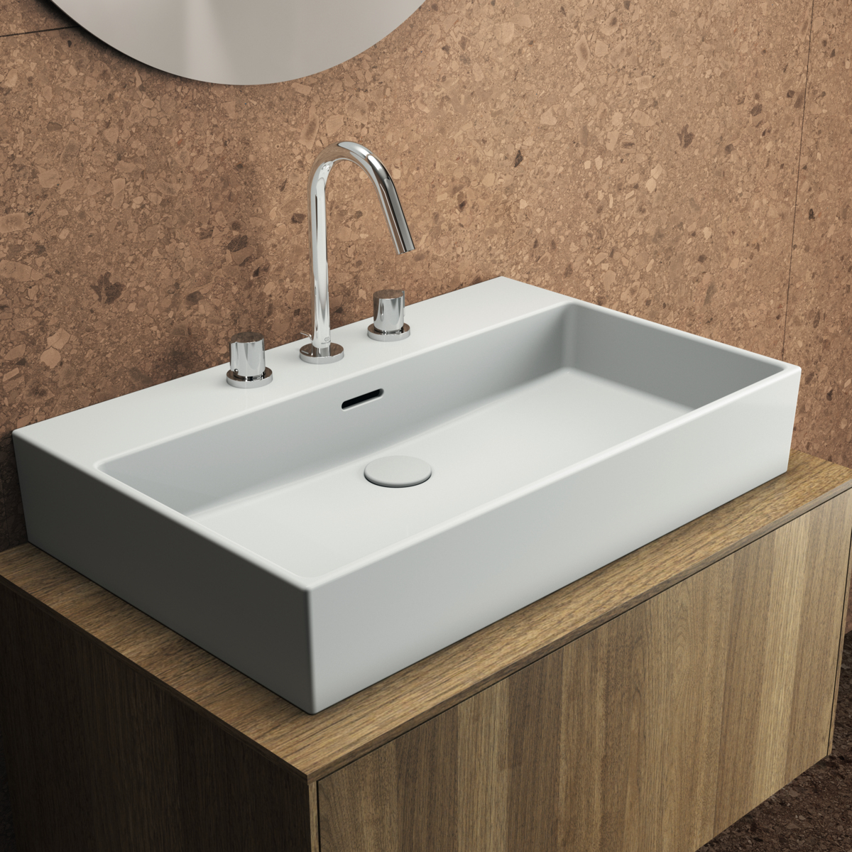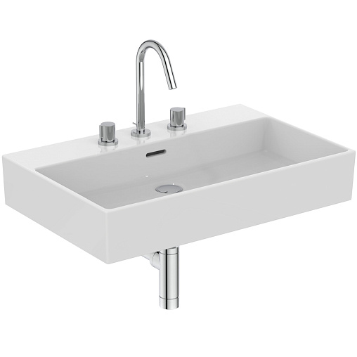 Подвесная раковина Extra 70х45х15 см, с 3 отверстиями под смеситель, нижняя поверхность отшлифована, санфарфор, с отв. под смеситель