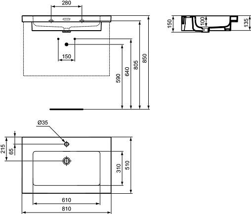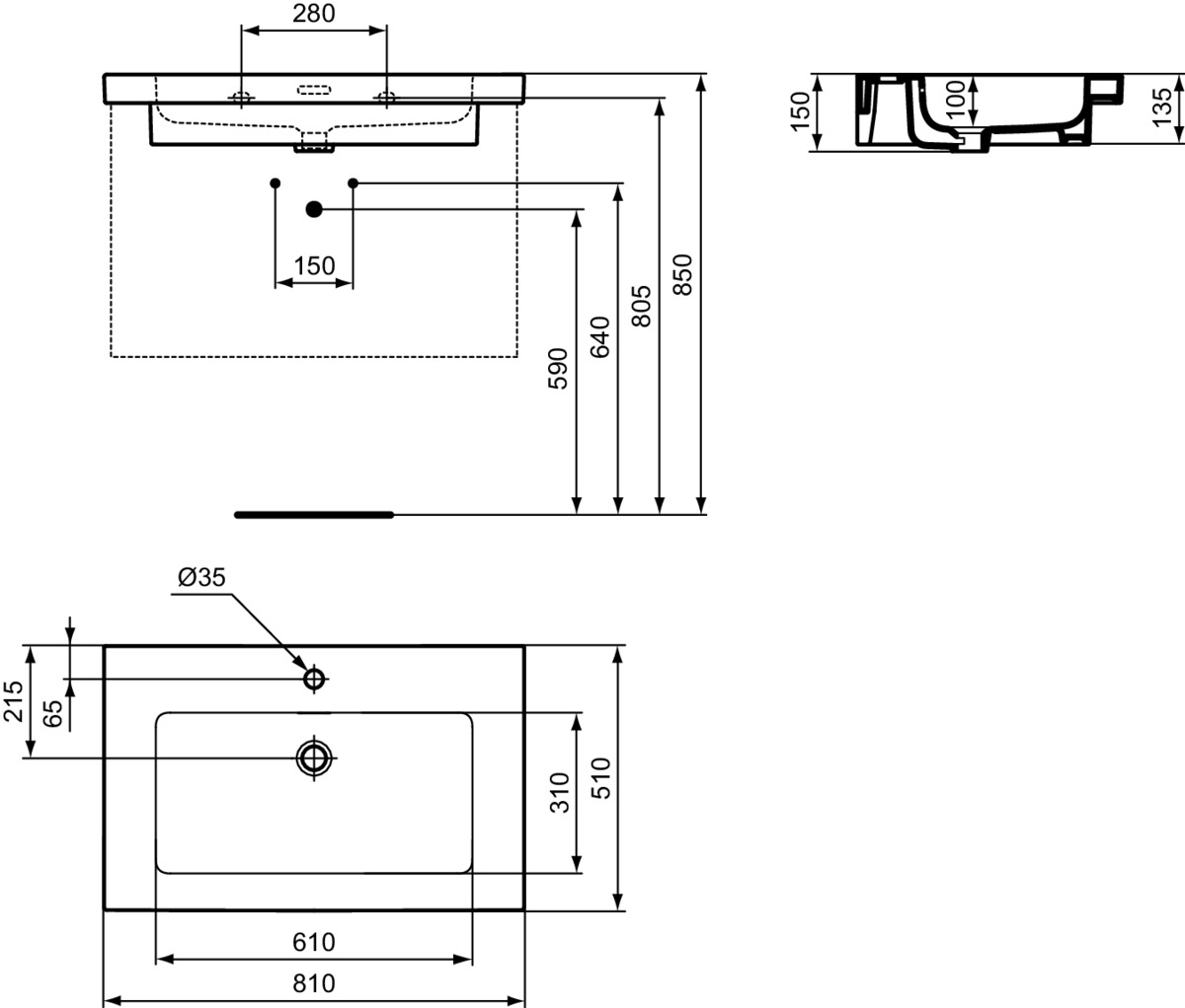 Подвесная раковина Extra 81х51х15 см, санфарфор, с отв. под смеситель