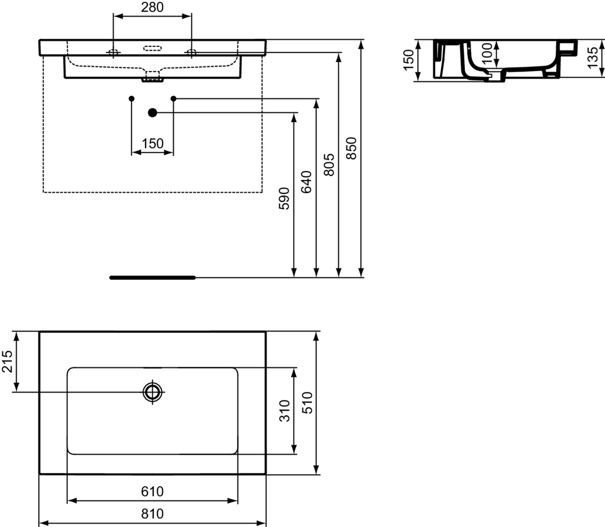 EXTRA VANITY Раковина 81 см, без отверстий под смеситель, с отверстием перелива