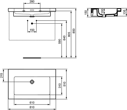 Подвесная раковина Extra 81х51х15 см, санфарфор