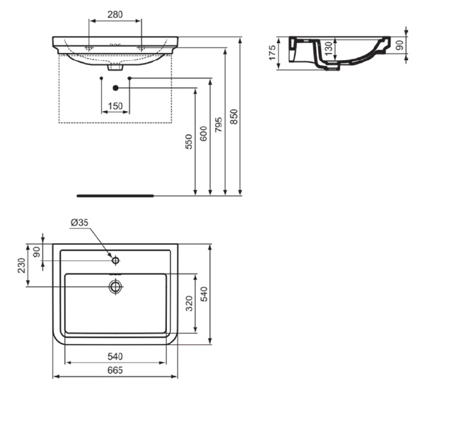 I.life A 84х46х13см, подвесная раковина, с отв. под смеситель, арт. T462001, Ideal Standard