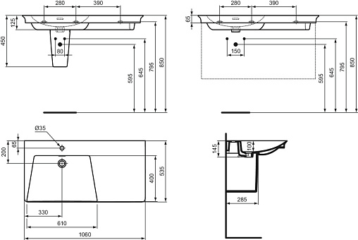 Подвесная раковина La Dolce Vita 106х53,5х14,5 см, левая, санфарфор, с отв. под смеситель