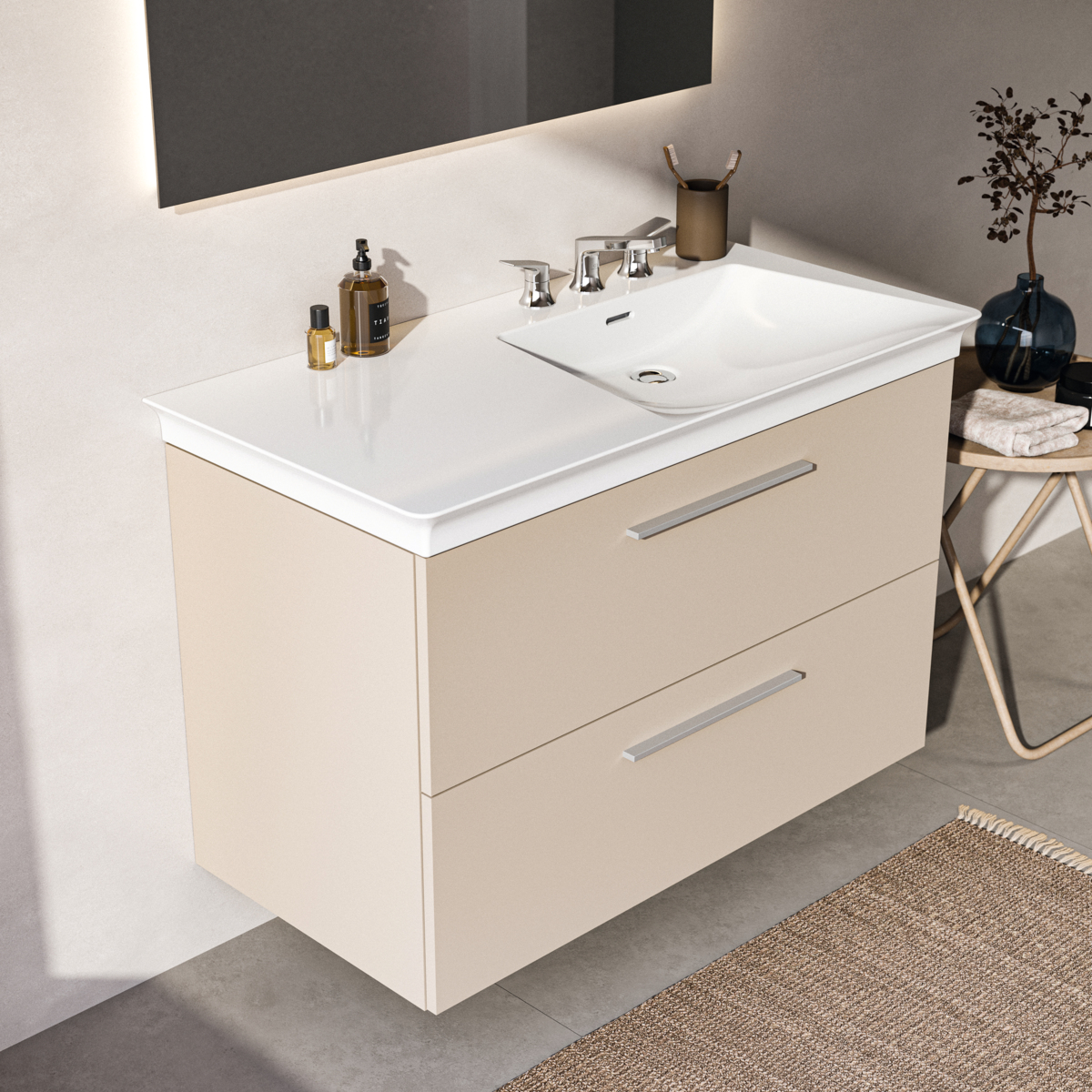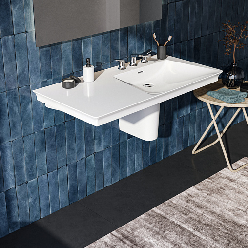 La Dolce Vita Раковина 106 см асимметричная, правая версия, с 3-мя отверстиями под смеситель, с отверстием перелива