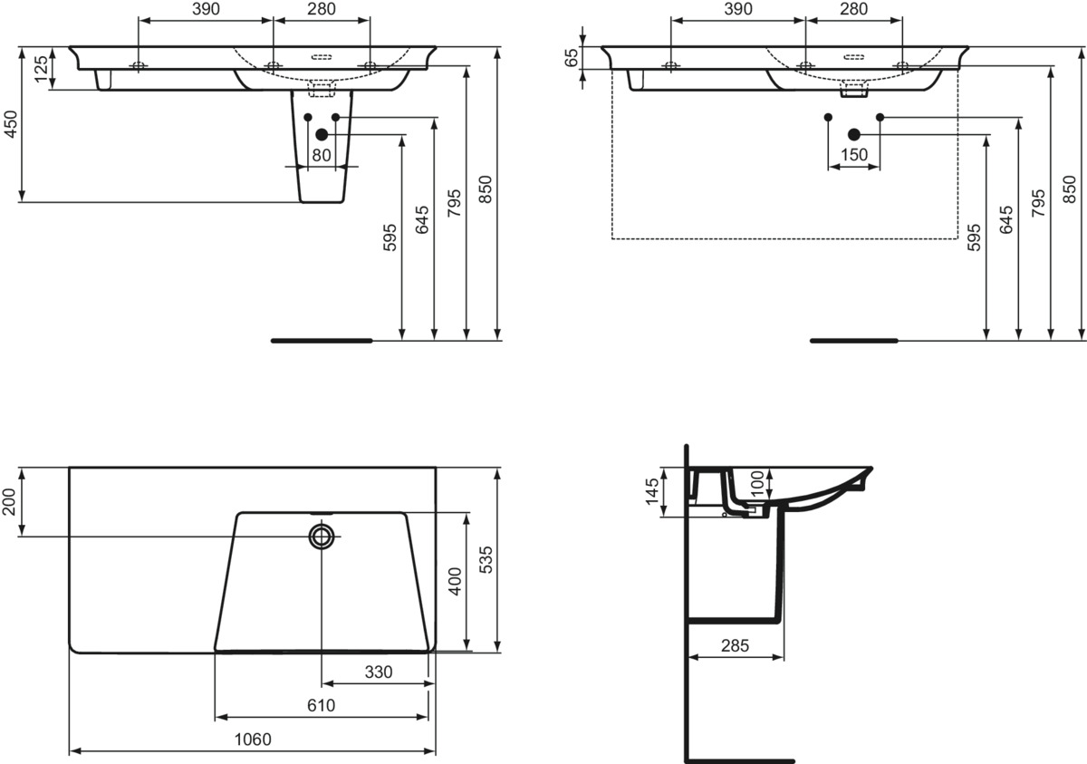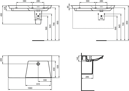 Подвесная раковина La Dolce Vita 106х53,5х14,5 см, правая, санфарфор