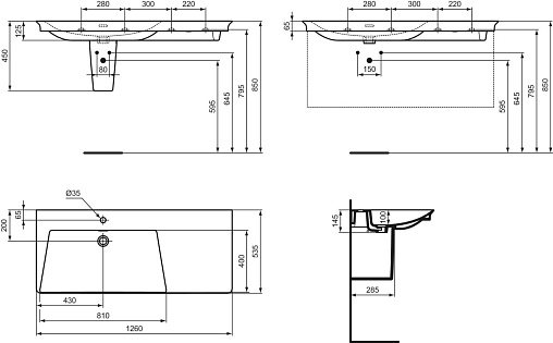 Подвесная раковина La Dolce Vita 126х53,5х14,5 см, левая, санфарфор, с отв. под смеситель