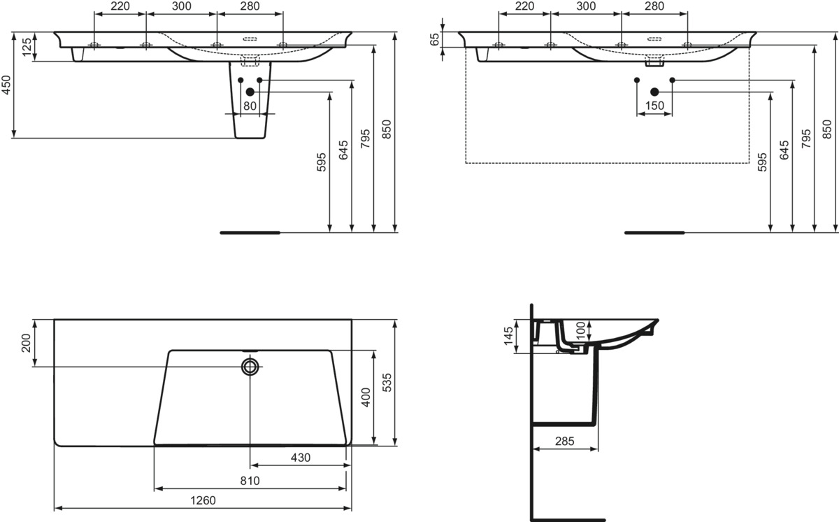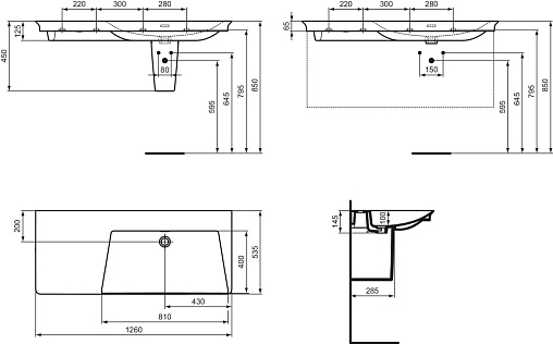 Подвесная раковина La Dolce Vita 126х53,5х14,5 см, правая, санфарфор