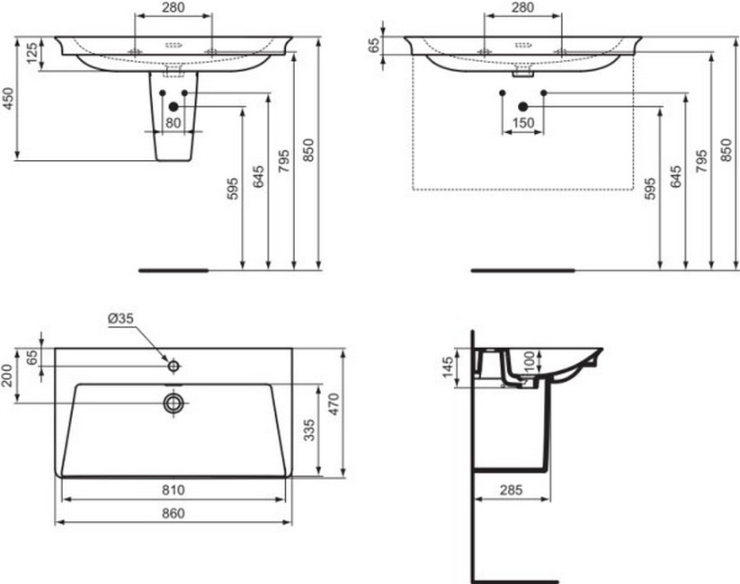 La Dolce Vita 86х47х12,5см, подвесная раковина, санфарфор, с отв. под смеситель, арт. E262901, Ideal Standard