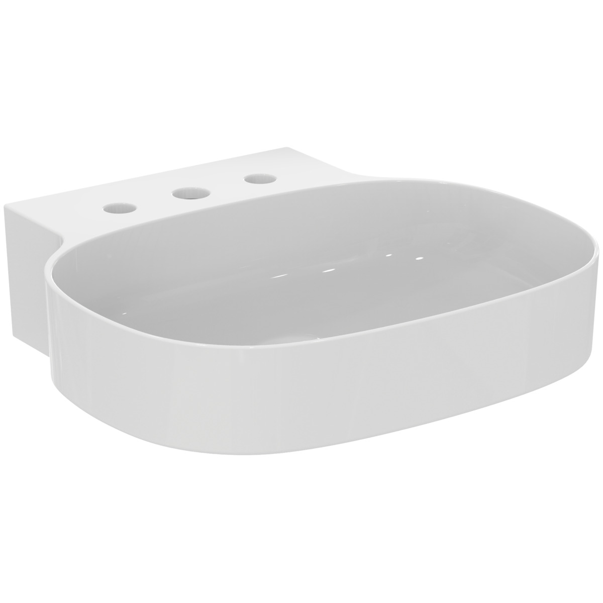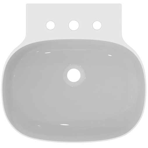 LINDA-X Раковина 50 см с тремя отверстиями под смеситель, без отверстия перелива. Технология Diamatec®. Для монтажа со скрытым переливом IdealFlow N8326AA или сливом Free flow E2114xx (заказываются дополнительно). Шлифованный низ, для настенного монтажа с мебелью или столешницей. С монтажным шаблоном. Без крепежа (рекомендованный крепеж - WW965340)