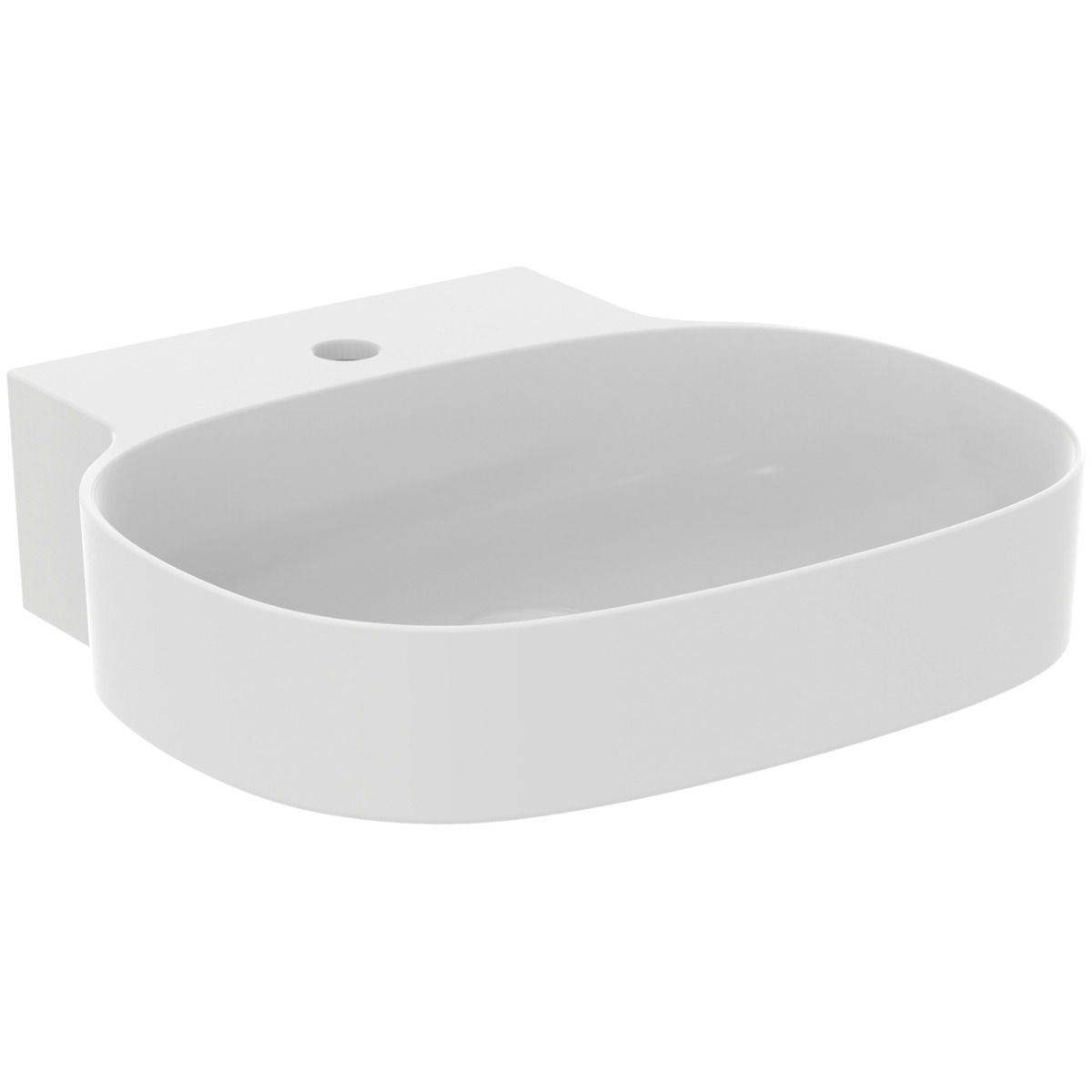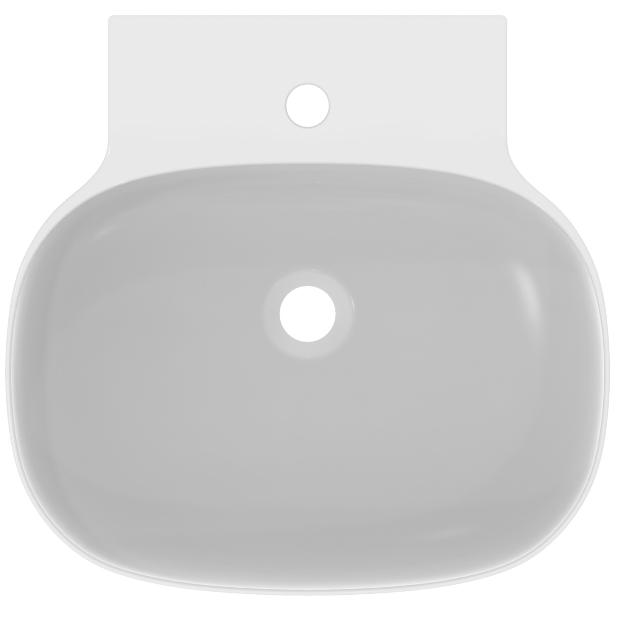 LINDA-X Раковина 50 см с отверстием под смеситель, без отверстия перелива. Технология Diamatec®. Для монтажа со скрытым переливом IdealFlow N8326AA или сливом Free flow E2114xx (заказываются дополнительно). Шлифованный низ, для настенного монтажа с мебелью или столешницей. С монтажным шаблоном. Без крепежа (рекомендованный крепеж - WW965340)