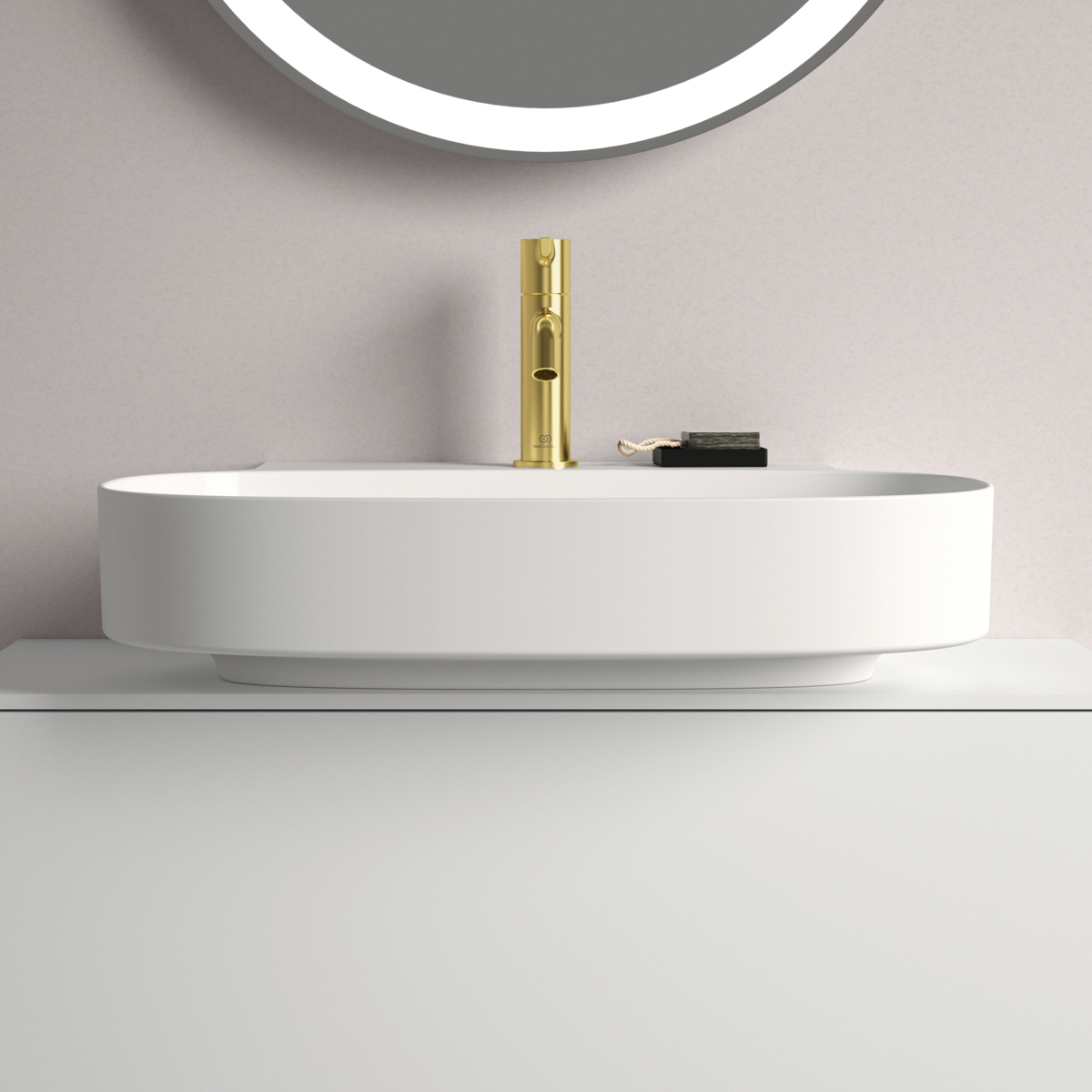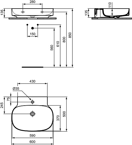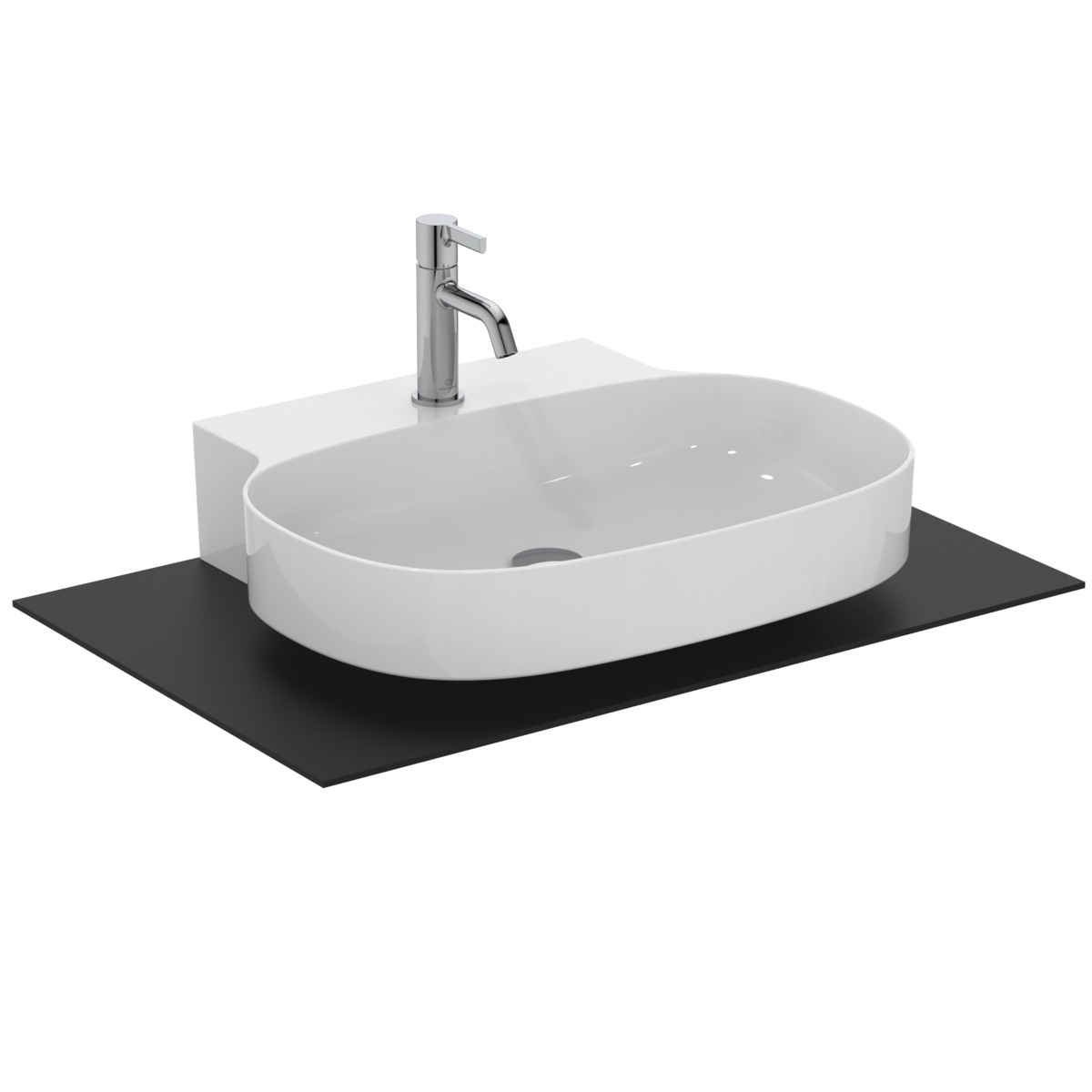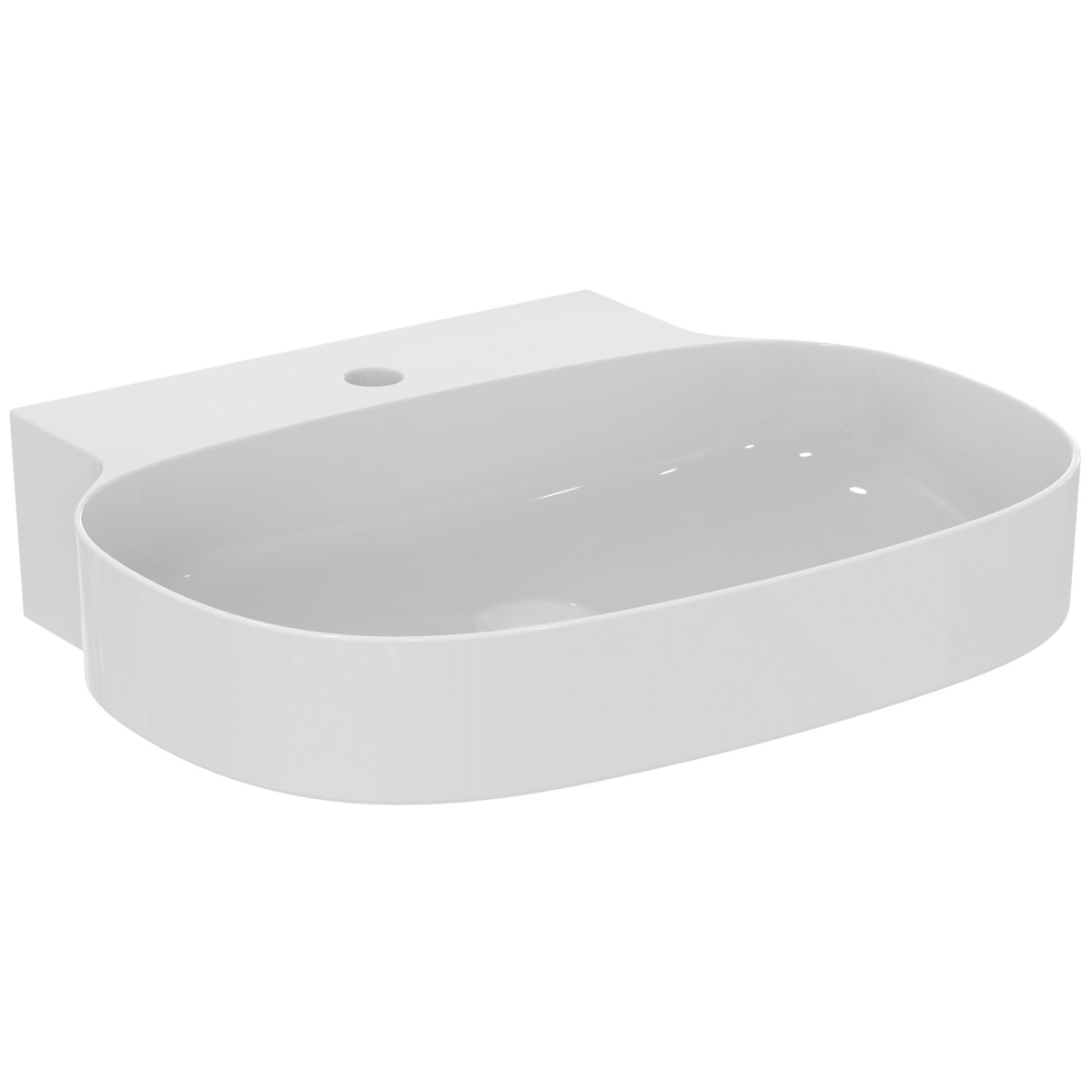 LINDA-X Раковина 60 см с отверстием под смеситель, без отверстия перелива. Технология Diamatec®. Для монтажа со скрытым переливом IdealFlow N8326AA или сливом Free flow E2114xx (заказываются дополнительно). Шлифованный низ, для настенного монтажа с мебелью или столешницей. С монтажным шаблоном. Без крепежа (рекомендованный крепеж - WW965340)