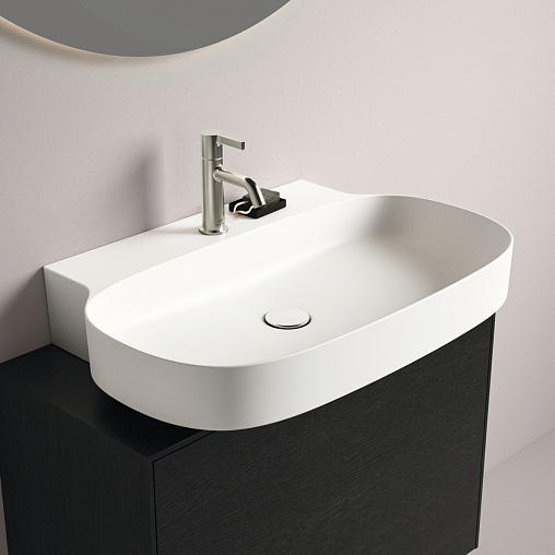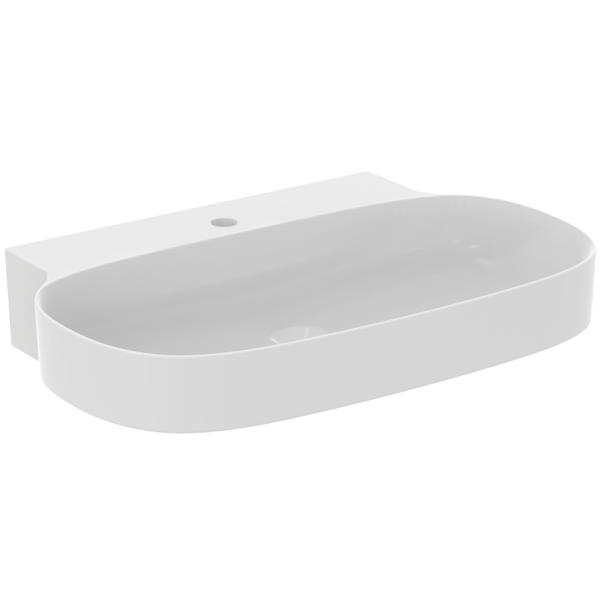 LINDA-X Раковина 75 см с отверстием под смеситель, без отверстия перелива. Технология Diamatec®. Для монтажа со скрытым переливом IdealFlow N8326AA или сливом Free flow E2114xx (заказываются дополнительно). Шлифованный низ, для настенного монтажа с мебелью или столешницей. С монтажным шаблоном. Без крепежа (рекомендованный крепеж - WW965340)