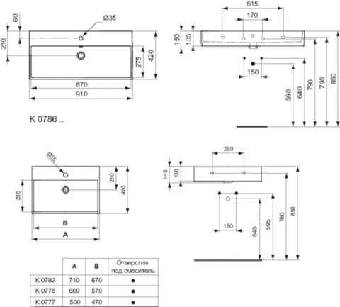 С отверстием под смеситель