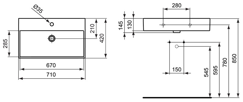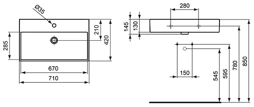 Strada 71х42х13см, подвесная раковина, санфарфор, арт. K078201, Ideal Standard
