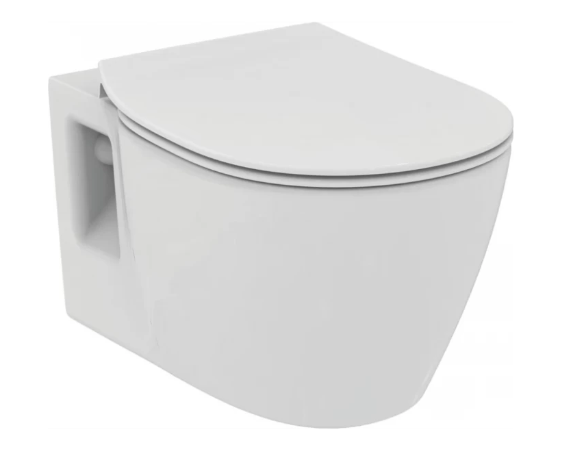 CONNECT Подвесной унитаз (E803501), глубокий смыв, с сиденьем и крышкой E772401 (тонкое легкосъемное сиденье и крышка с функцией плавного закрытия, дюропласт, шарниры металл/пластик)