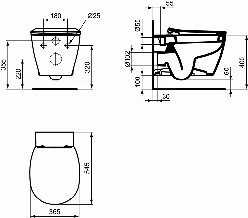 Подвесной унитаз Connect 36,5х54,5 см, с сиденьем
