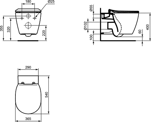 Подвесной унитаз Connect 36,5х54 см, без сиденья