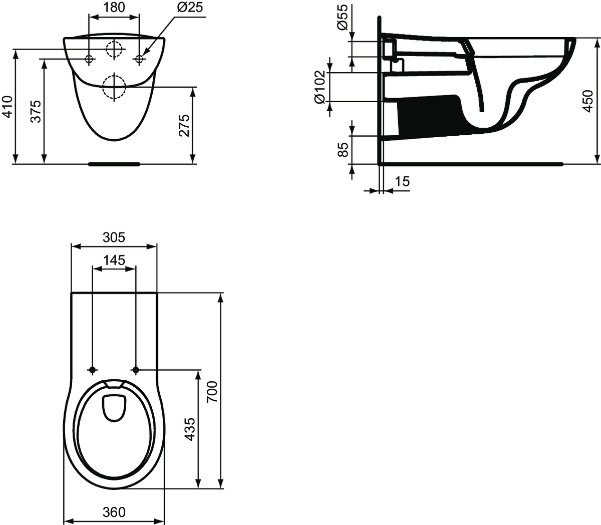 Подвесной унитаз Contour 21+ 36х70 см, для людей с ограниченными возможностями, безободковый, с сиденьем
