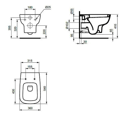 Подвесной унитаз, глубокий смыв, с крепежом TT0299598, сидение и крышка заказывается дополнительно