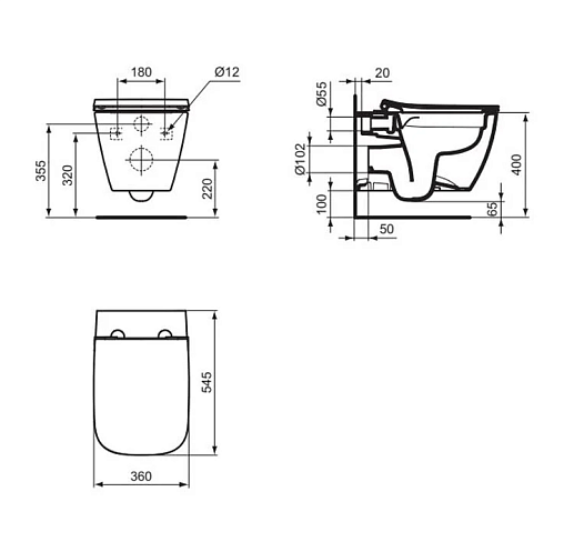 I.life B 36х54,5см, подвесной унитаз, безободковый, с сиденьем, микролифт, быстросъемное, арт. T5330HY, Ideal Standard