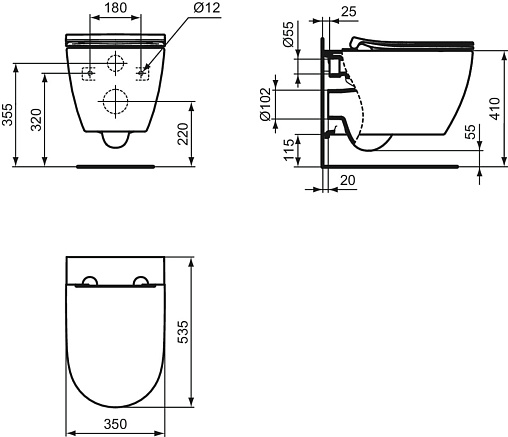 IS I.LIFE O Подвесной унитаз с технологией смыва HydroTwist, глубокий смыв, с крепежом EasyFix+ Top fixation TR16667 для полностью скрытого монтажа. Сиденье и крышка T572401 в комплекте