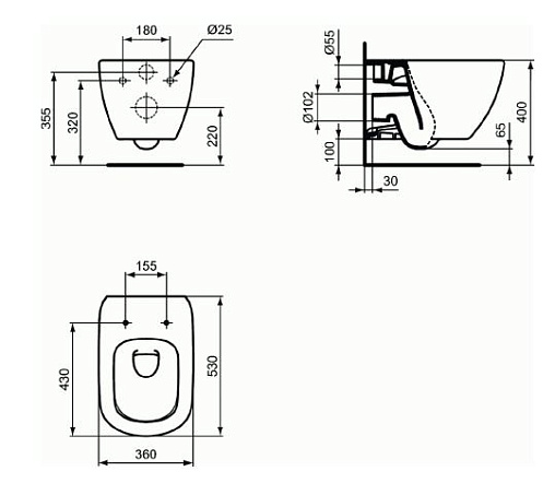 Tesi 36,5х40см, подвесной унитаз, без сиденья, арт. T0079V1, Ideal Standard