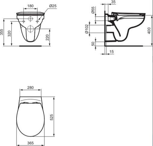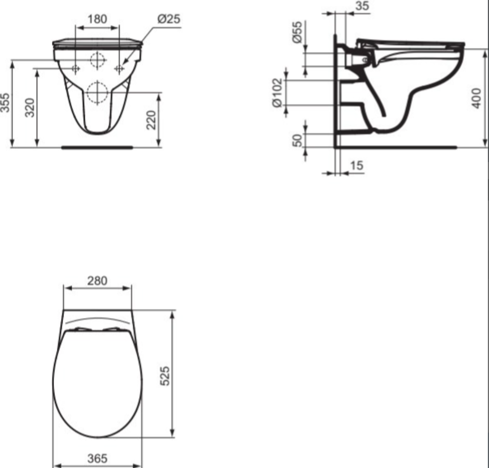 Tirso 36х52см, подвесной унитаз, безободковый, с сиденьем, арт. R034301, Ideal Standard