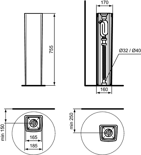 CONCA Колонна для круглого умывальника-чаши. Специальная внутренняя металлическая конструкция для установки подводки и сифона