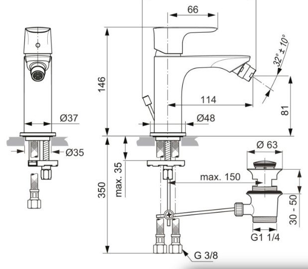 Смеситель для биде Connect Air стальной цвет, с донным клапаном