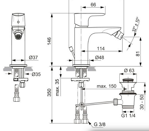 Connect Air, смеситель для биде, стальной цвет, с донным клапаном, арт. A7030GN, Ideal Standard