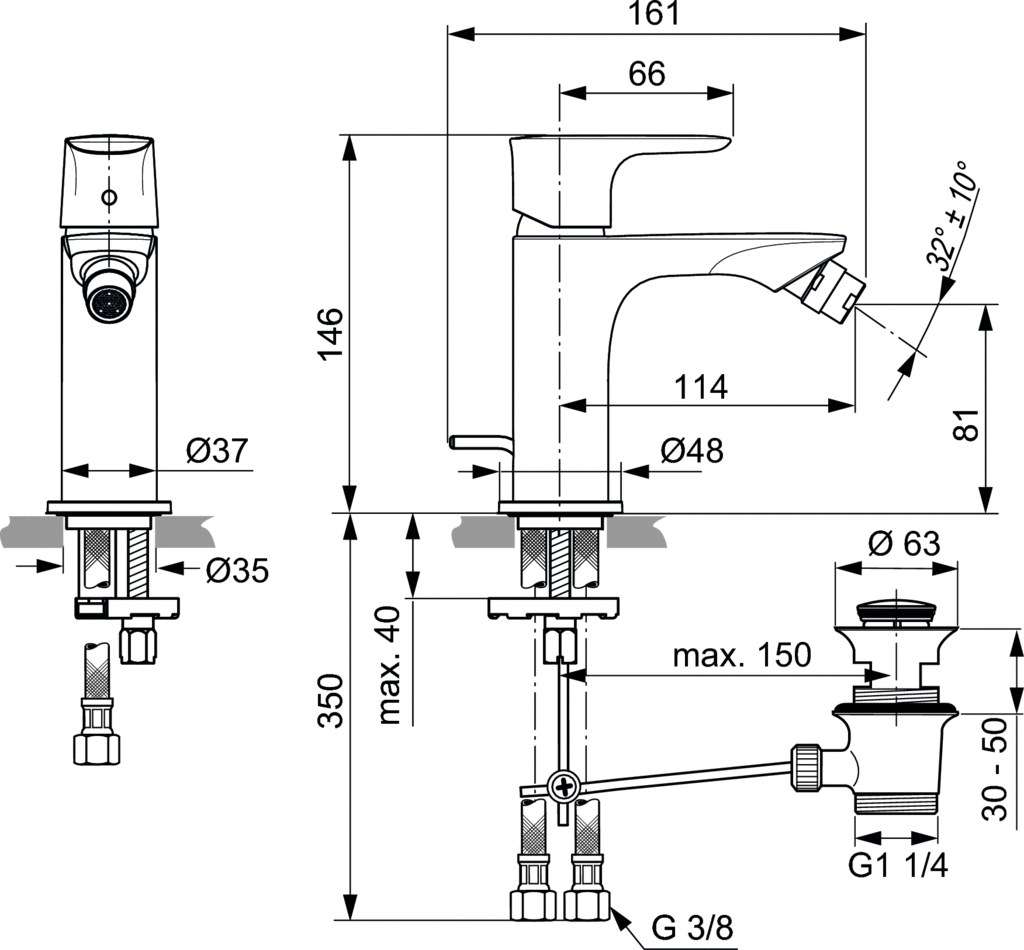 Connect Air, смеситель для биде, золото шлифованное, с донным клапаном, арт. A7030A2, Ideal Standard