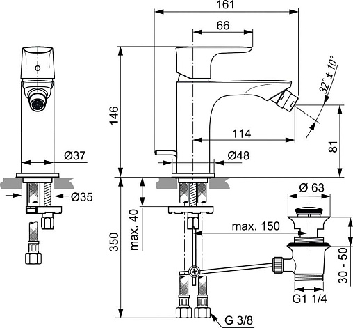 Смеситель для биде Connect Air золото шлифованное, с донным клапаном