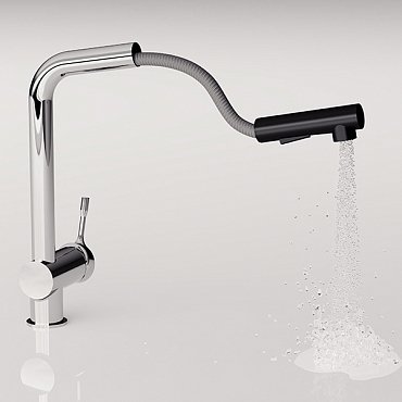 Смеситель для кухни с выдвижной лейкой Ceralook с черной вставкой