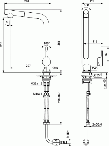 Ceralook, смеситель для кухни с выдвижной лейкой, арт. BC176AA, Ideal Standard